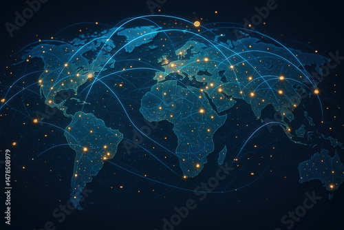 high-resolution Earth globe with white curved lines indicating airline routes and cargo paths