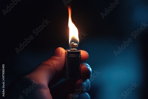 Lighting a blazing flame with a lighter in a dark environment while holding it firmly, Hand lights the lighter Blazing lighter in hand on super slow motion