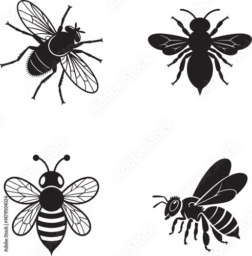 Bee Silhouette Vector Collection Insect Icons for Nature Design and Identification