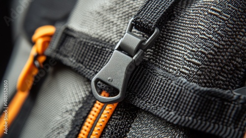 Casual fabric backpack, zipper and buckle detail, isolated white