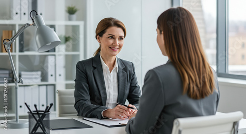 Business Meeting in Modern Office: Professional Discussion and Collaboration