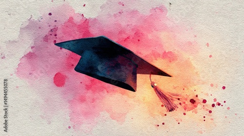 Graduation cap painting, watercolor style, graduation season, vacation, graduation, academic success, summer vacation, coming of age, coming of age ceremony, 4k HD wallpaper, background, generated by