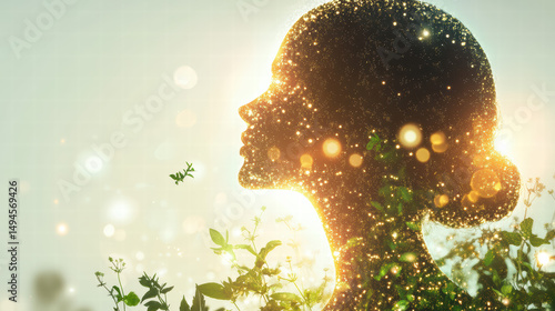 Eternal Harmony: A captivating silhouette of a woman, harmoniously blended with the natural world. The image evokes feelings of balance and serenity.