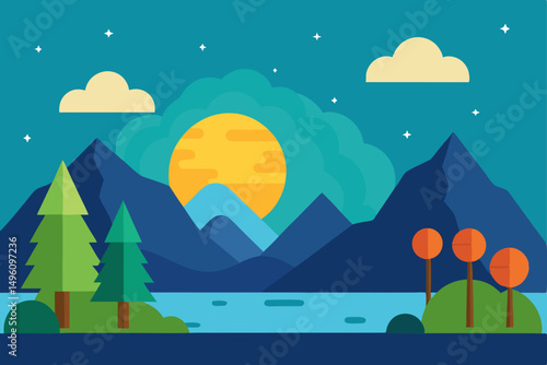 Clean Simplified Nature Landscape Scene for Mobile Phone Wallpaper Vector Illustration Background