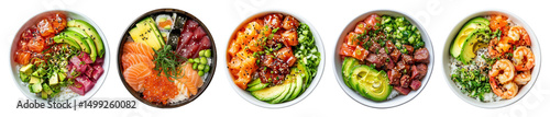 PNG Colorful fresh poke bowls variety, element set on transparent background