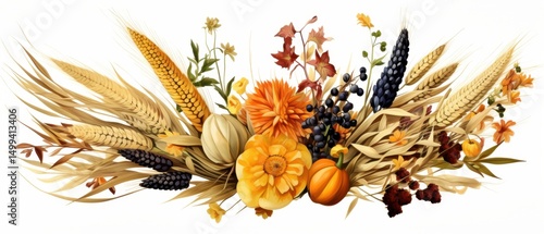 Jesienna kompozycja roślinna z zbożami i kwiatami