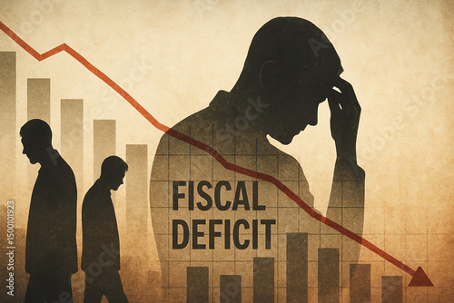 A conceptual illustration depicting the impact of fiscal deficit, showcasing the struggle and concern associated with economic decline through stark visual elements.