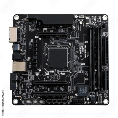 Black motherboard computer isolated on transparent background