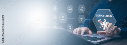 Supply Chain Management concept transportation and logistic suppliers, import export and transport industry. network distribution growth. container cargo ship and trucks of industrial cargo freight