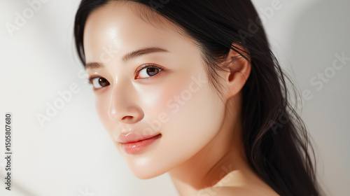 素肌感あふれる女性のアップポートレート。透明感のある輝きが魅力(美容・スキンケア・コスメ)