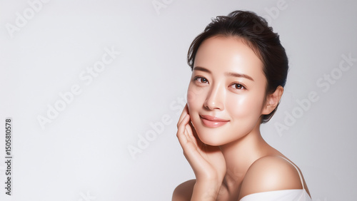 清潔感あふれる若い女性の微笑みポートレート・ナチュラルメイクと素肌感(美容・スキンケア・コスメ・エステ)