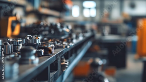 Industrial Metal Parts Close-up: Precision Engineering in a Factory Setting