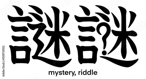Japanese kanji calligraphy and pictorial Japanese kanji for mystery and riddle isolated on transparent background, tattoo idea