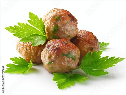 Kfte meatballs with fresh herbs presenting a delicious culinary delight on a clean white backdrop