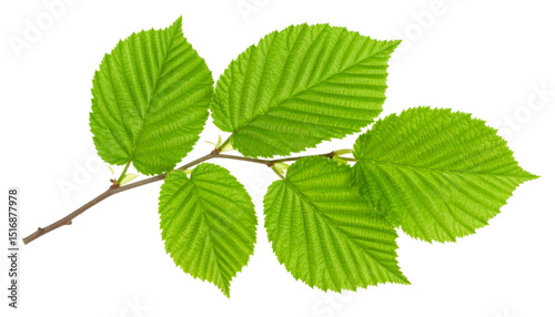 Witch hazel branch highlighting verdant foliage, green leaves emerging against transparent background, botanical graphic element