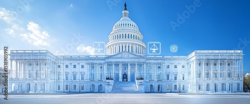 Capitol building, bright sunny day, architectural detail, iconic landmark