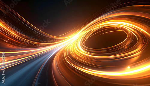 黄金の光が渦巻く近未来的な抽象アート