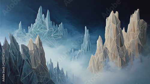 album cover for ambient music | cosmic silence | awe of nature | frosted neutrals | spiritual symmetry | geometric cliffs | luminescent outlines | light sculpting | canadian wilderness mysticism |