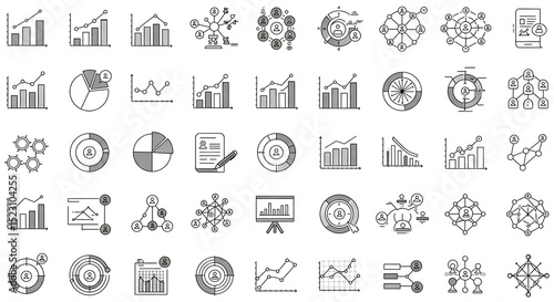 Visualizing Growth: A comprehensive collection of linear and pie charts. This is a monochrome collection designed to simplify data representation in various scenarios.