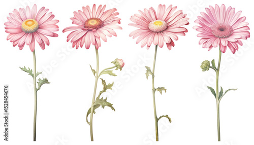 PNG Pink daisies botanical illustration, element set on transparent background