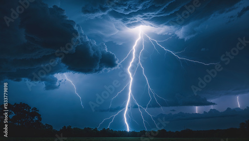 Powerful lightning strikes across a dark ominous sky capturing natural atmospheric phenomenon