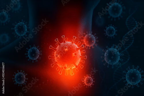 Wizualizacja wirusa w czerwono-niebieskiej kolorystyce – koncepcja infekcji, pandemii i zagrożeń biologicznych