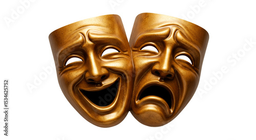 Golden comedy tragedy masks theater drama acting performance arts theatre stage play acting masks on transparent background