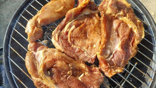 grilled chicken and pork ribs on grill