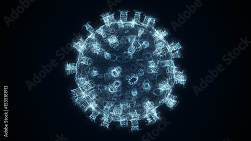 Virus influenza outbreak. Medical research of molecules in science. Influenza strain epidemic as a pandemic. Outbreak of pneumonia, coronavirus, HIV, plague, infection. 3D rendering.