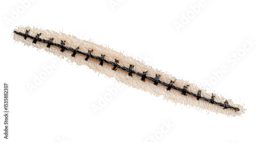Close up of a surgical suture closing a wound, symbolizing healing and recovery, isolated on a transparent background for easy integration into various projects