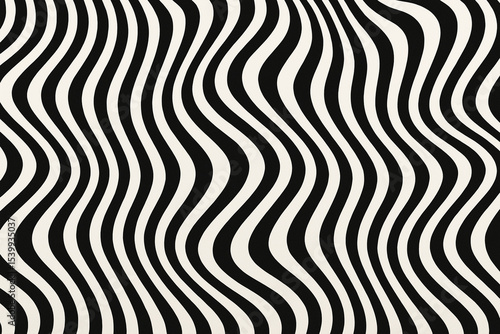 Stylish black and white optical illusion pattern with flowing wavy lines and a 3D depth effect. Perfect minimalistic background for modern design and visual impact.