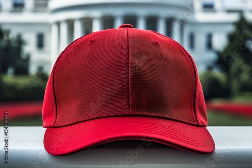 A red baseball cap with symbolic meaning is located in front of the White House in Washington
