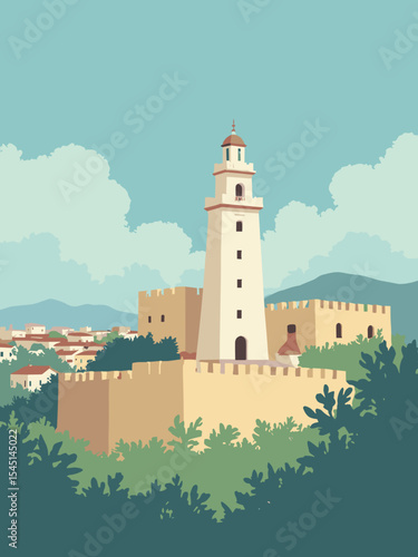 Santo Domingo, Dominican Republic - Alcázar de Colón, Columbus Lighthouse, Zona Colonial in fortress tan, lighthouse white, district beige, and tropical green