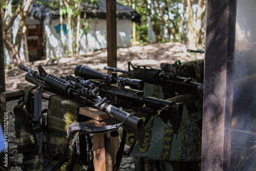 Jungle Scene with Assault Rifle on Table in Cauca, Colombia