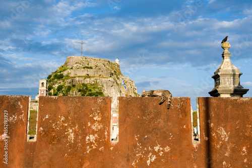 Śpiący kot ze Starą Twierdzą na Kerkira w tle