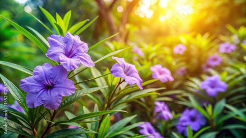 Tropical foliage with Ruellia tuberosa flower and green leaves in a sunny garden, flowers, green, flowers, green, plant
