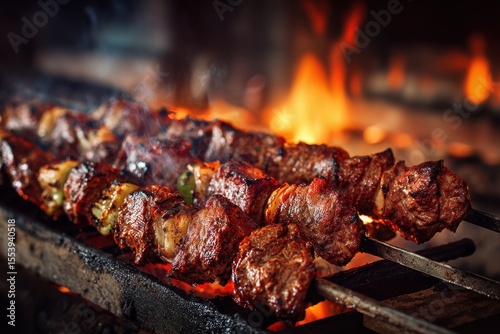 Grilled Arabic dishes Shish taouk and lamb skewers focused shot