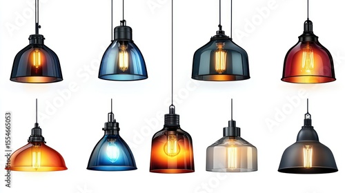 Set of pendant lamps in various colors