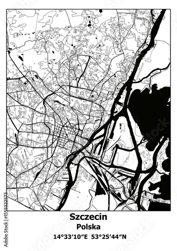 Czarno-biała mapa Szczecina