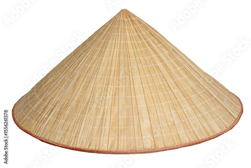 Traditional straw conical hat. Non LA (Vietnamese or Chinese style) crafted conical hats originating. Asian conical hat isolated.