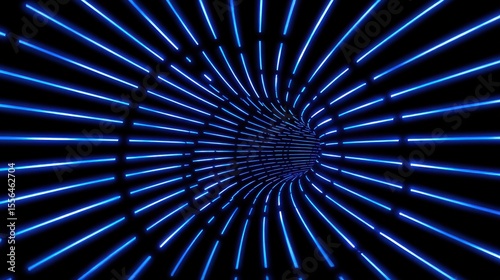 Abstract Motion Design of Spiraling Blue Neon Lights Creating a Dynamic Tunnel Effect