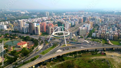 Aerial view of Biswa Bangla Gate, This is an arch-monument in the city of New Town, Kolkata, West Bengal, India.