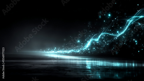 閃光のごとき光の軌跡 - 水面に反射する青いエネルギー背景