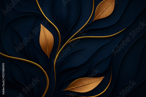 Elegancka ilustracja liści w odcieniach złota na ciemnym tle – nowoczesny design w stylu minimalistycznym.