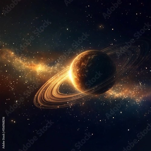 Celestial Majesty: An awe-inspiring cosmic vista of Saturn, the ringed giant, gleaming brilliantly amidst a star-studded expanse, igniting a sense of wonder and exploring the vastness of space.