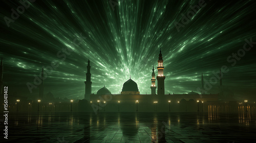 Abstract Light Rays Over Dome - Eid Milad-un-Nabi - 12 Rabi ul Awal Tribute