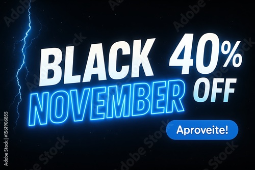 Black November Sale Ad with Neon Text and 40% Off Offer