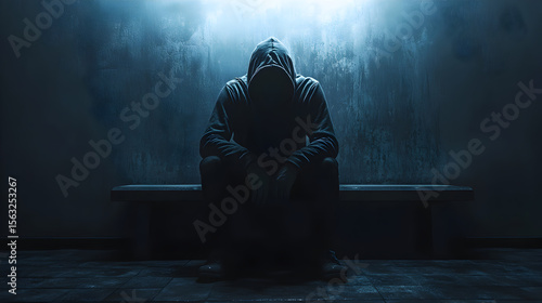 Conceptual illustration of depression and mental health challenges featuring a sad, slumped individual symbolizing emotional pain, inner struggle, loneliness, and personal isolation in ment 25427831 1