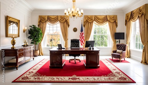 Formal office with American flag