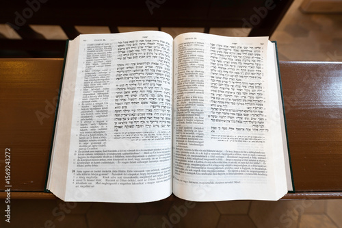 Otwarta Biblia hebrajsko-węgierska w synagodze w Oradei, Rumunia.